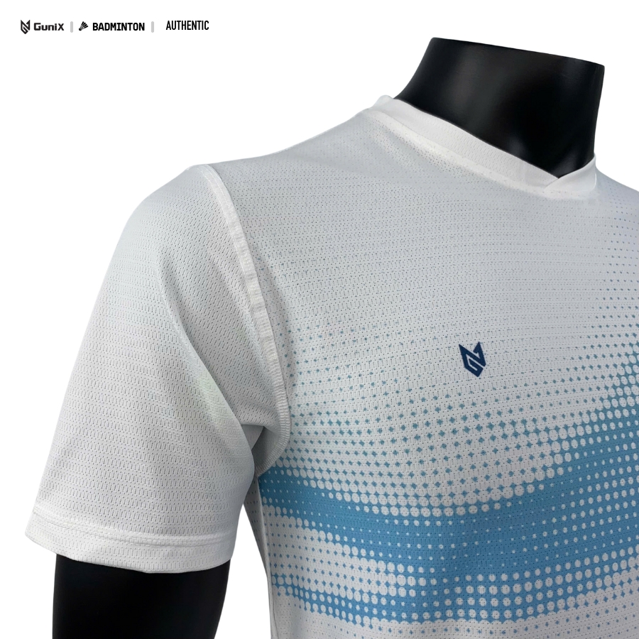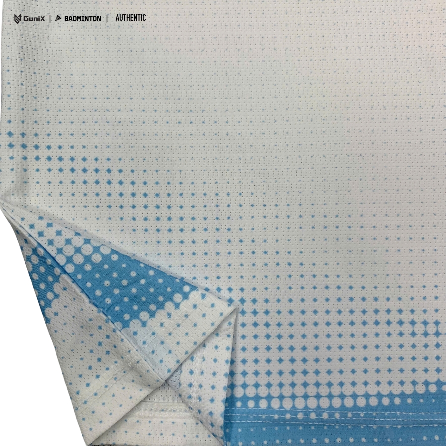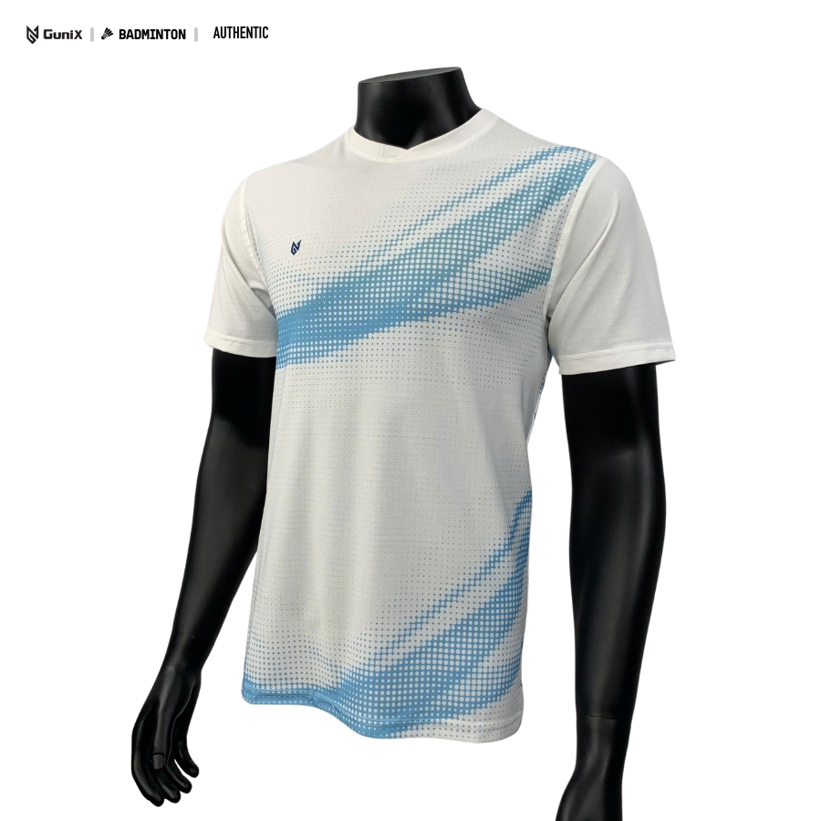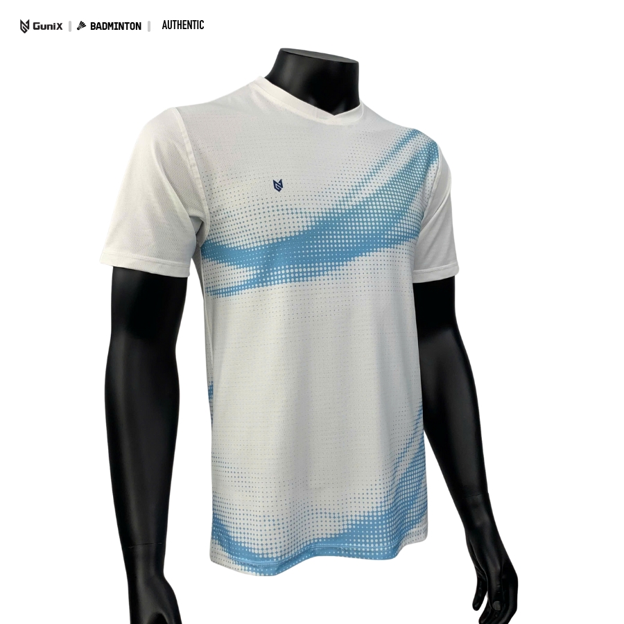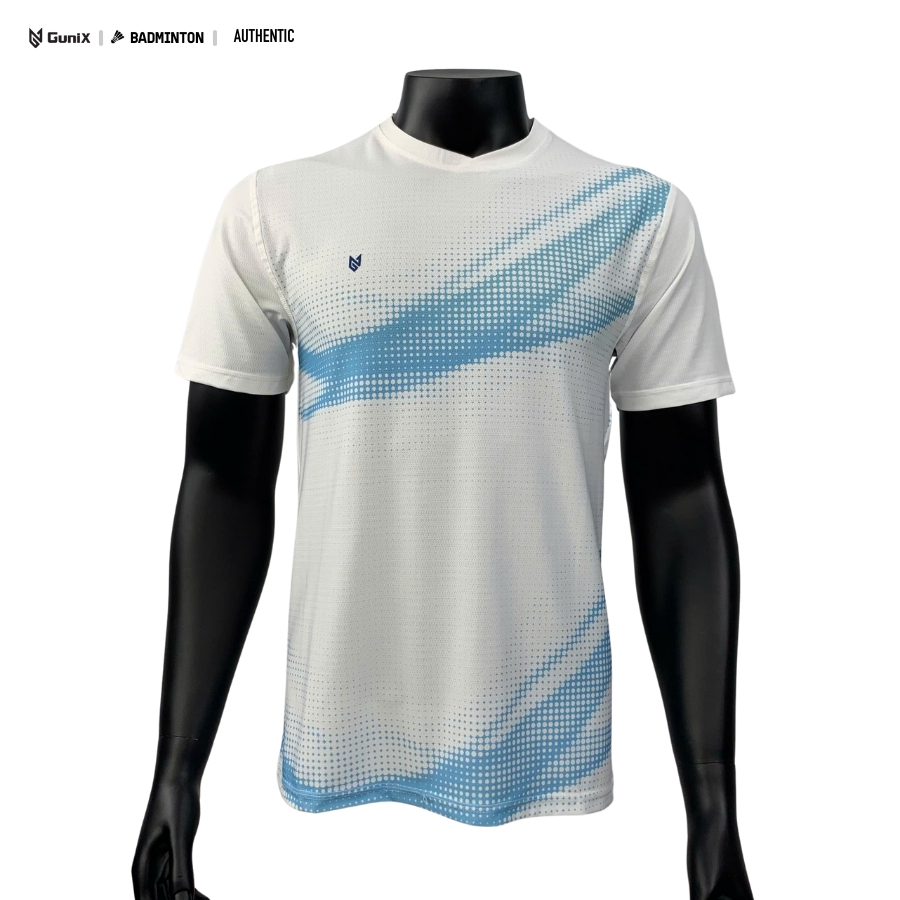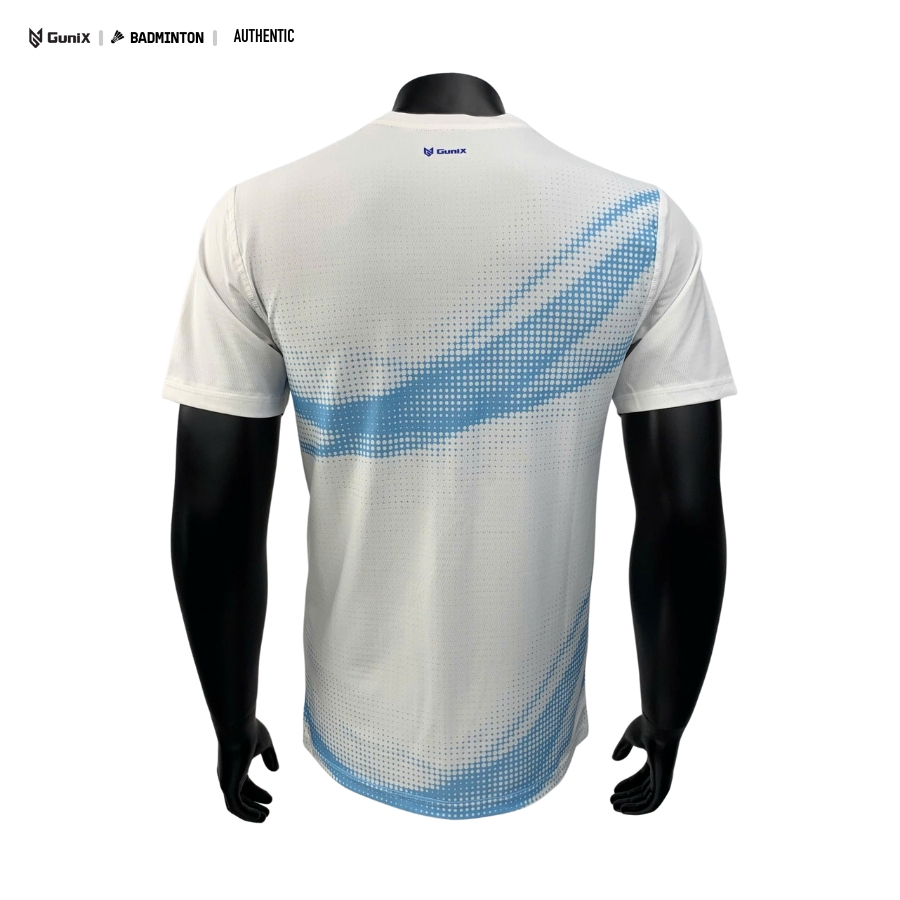 Áo nền trắng sạch sẽ, trang nhã được nhấn họa tiết xanh da – tạo điểm nhấn thể thao ấn tượng, mang phong cách trẻ trung, năng động và cực kỳ nổi bật trên sân.