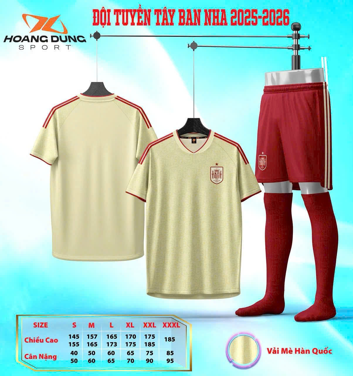 Áo Đá Banh HD Tuyển Tây Ban Nha 26 - Vàng Kem