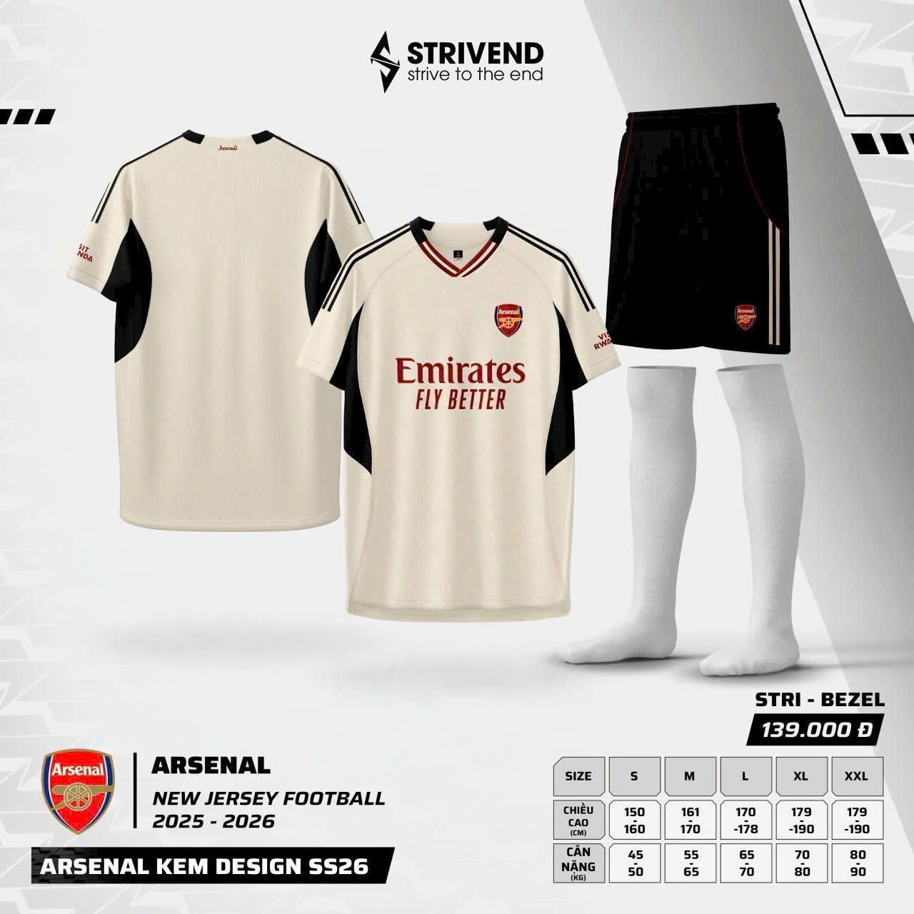 Áo Đá Banh Strivend Arsenal SS25 -Vàng Kem