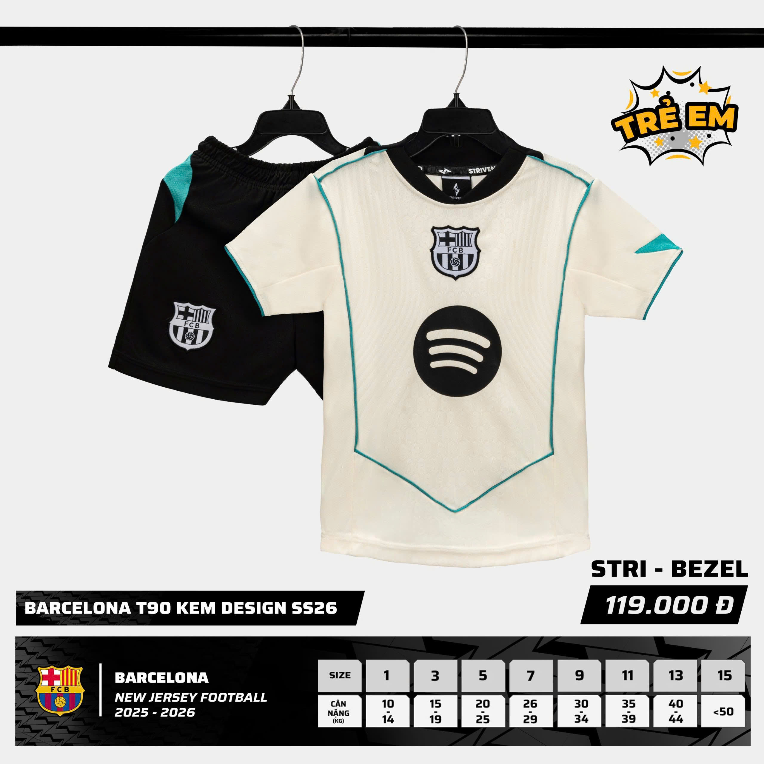 Áo Đá Banh Trẻ Em Strivend Barce T90 - Kem 25