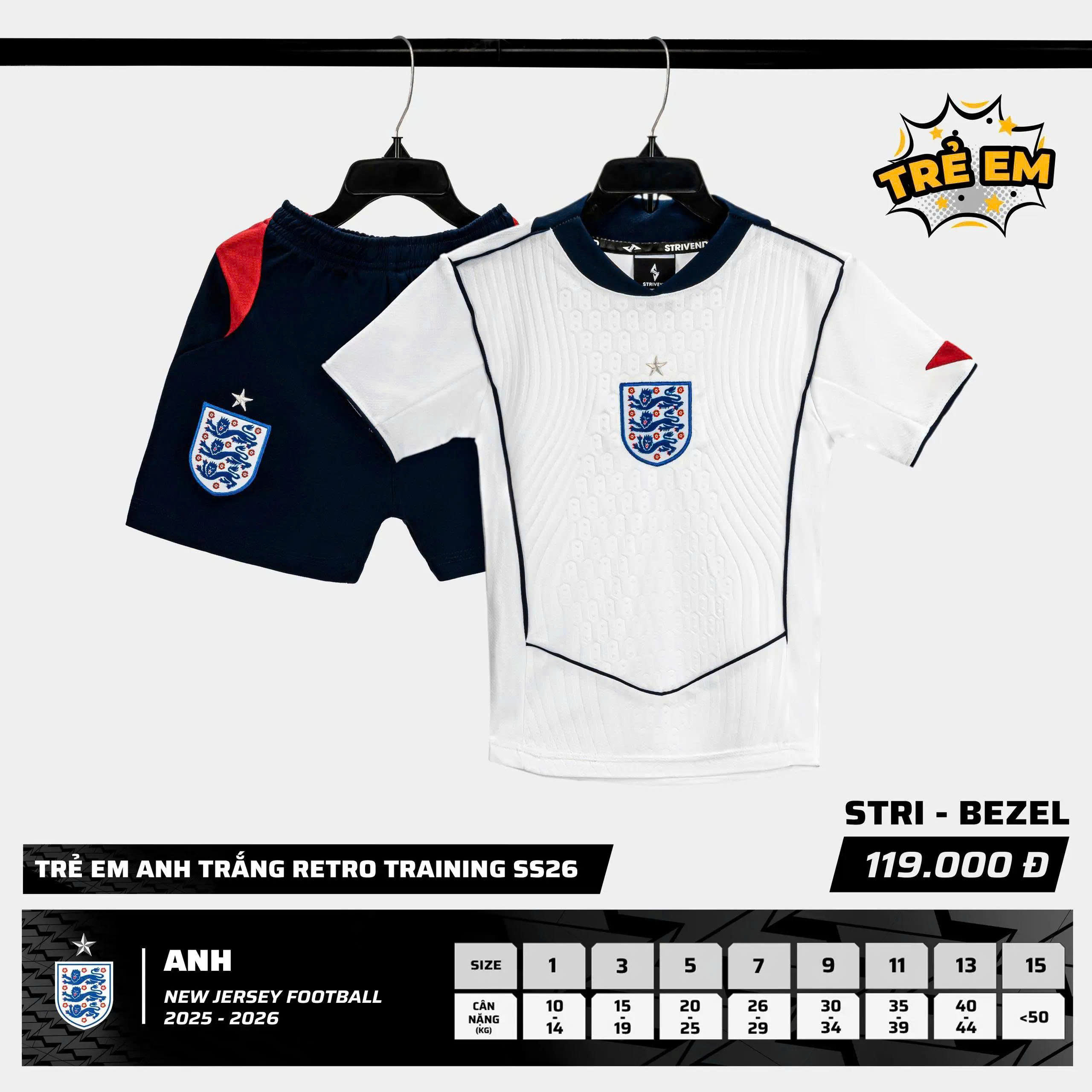 Áo Đá Banh Trẻ Em Strivend Tuyển Anh 25 - Trắng