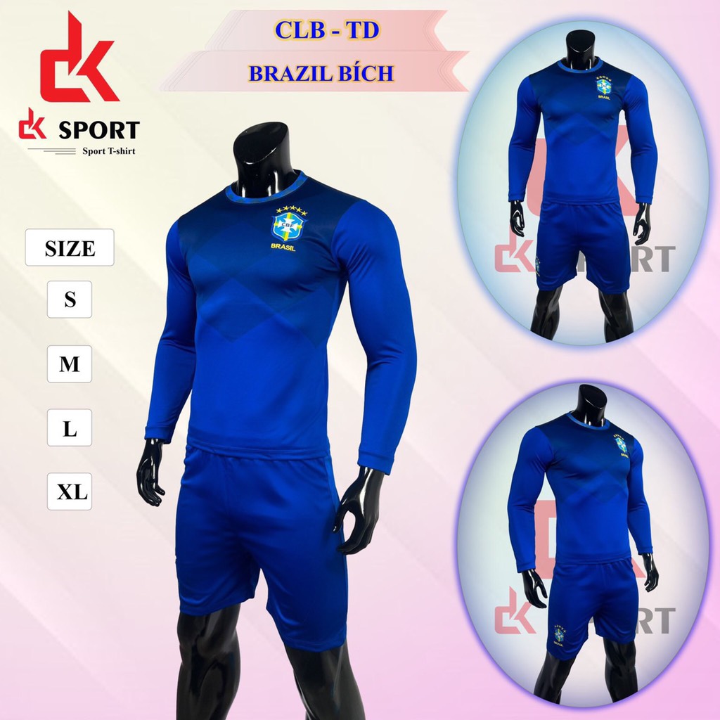 Áo Đá Bóng Brasil Tay Dài Xanh