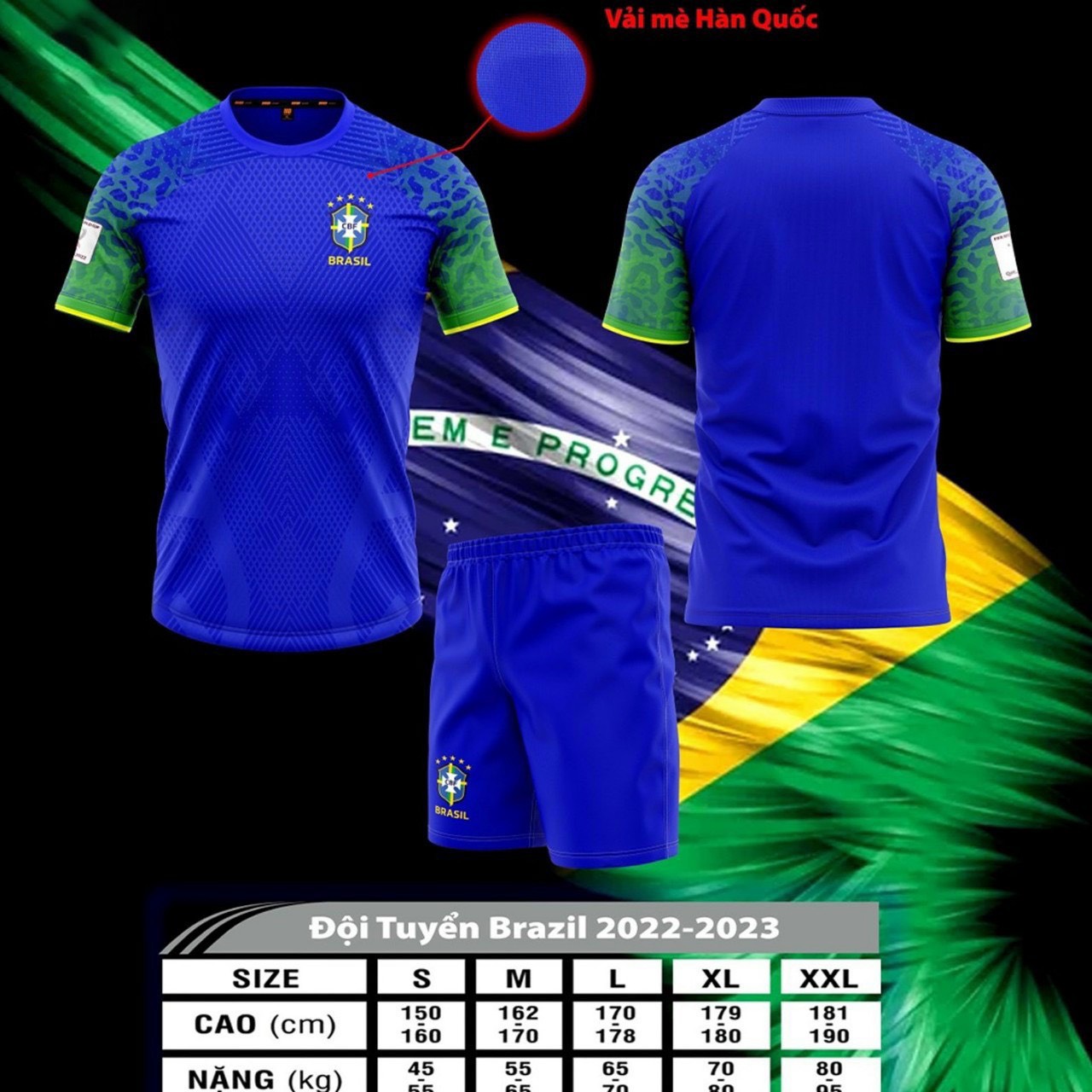 Áo Đá Bóng ĐT Brazil Bích WC Sân Khách Thun Mè