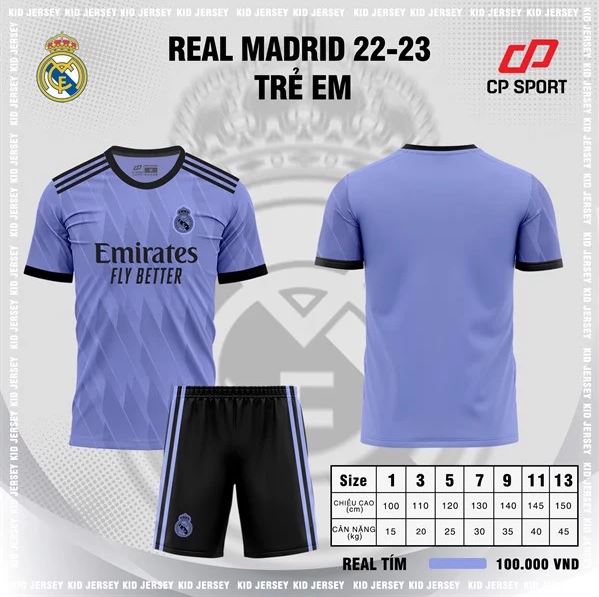 Áo Đá Bóng Trẻ Em CP Real Tím