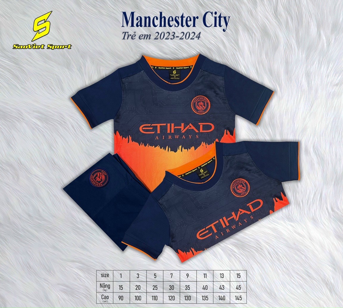 Áo Đá Bóng Trẻ Em Manctiy Xanh Phối Cam