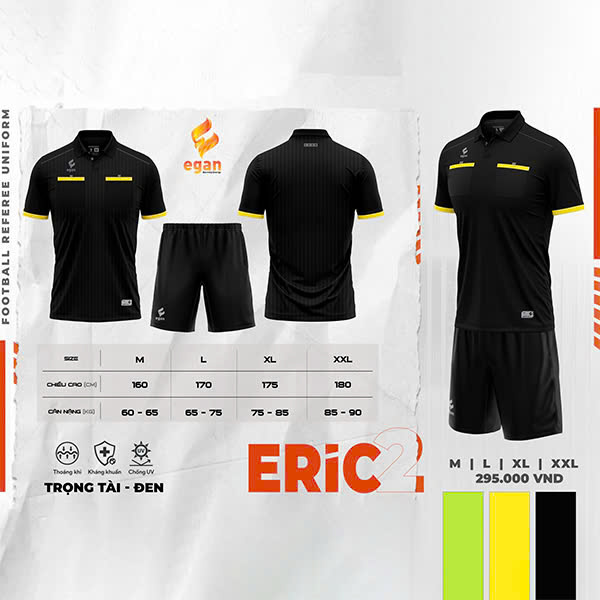 Bộ sưu tập trang phục trọng tài Eric thuộc dòng sản phẩm cao cấp Egan được ra mắt với hi vọng mang đến nhiều sự lựa chọn cao cấp và chất lượng cho các “vị vua quyền lực” của sân cỏ.