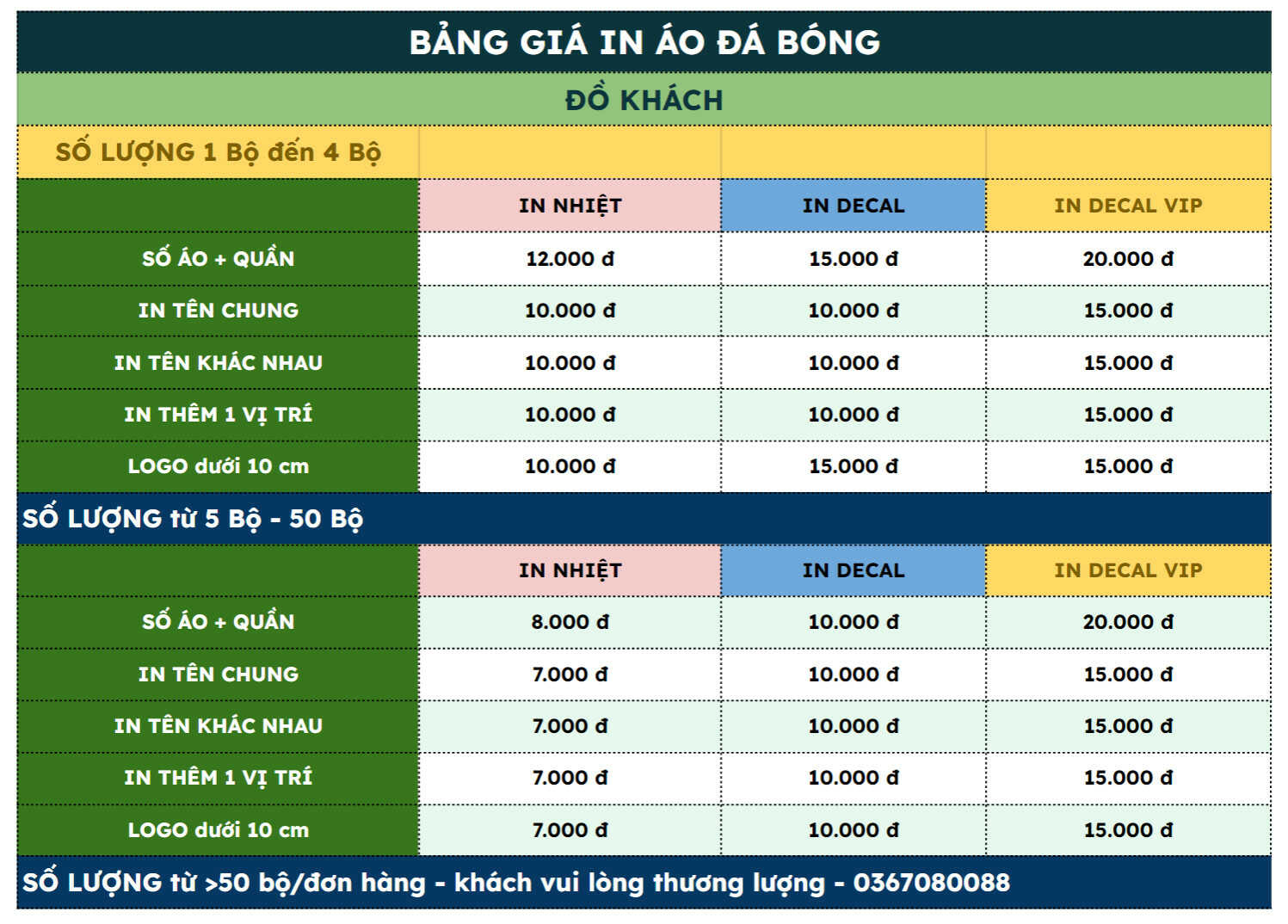 Bảng Báo Giá In Áo Đá Banh Tên Số Logo - In Gia Công Theo Yêu Cầu