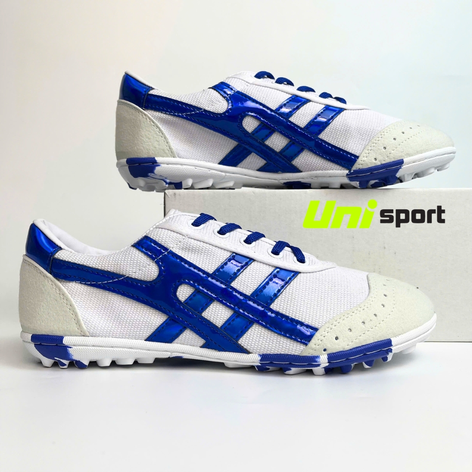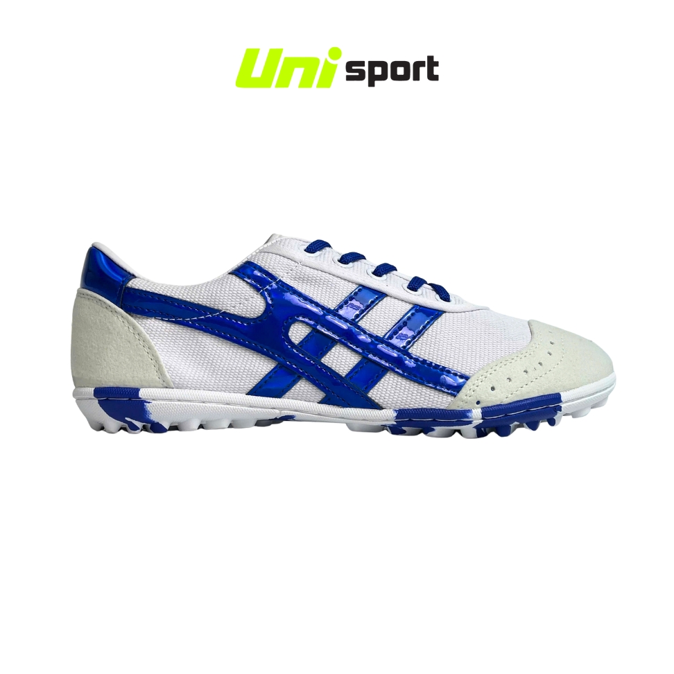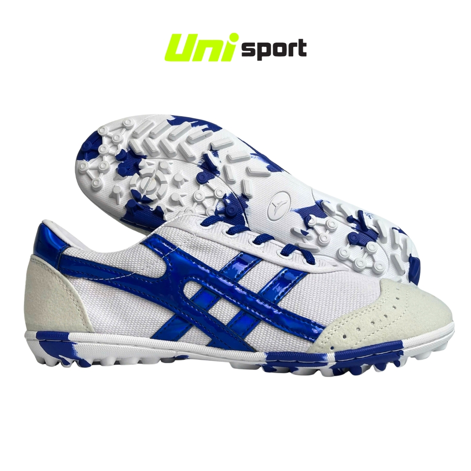 Giày Đá Banh Bata Warrior Ráp Đế Rằn Ri TF - Trắng Xanh