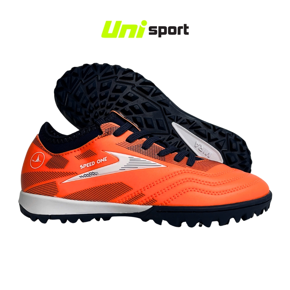 Giày Đá Banh Trẻ Em Mira Speed One - Cam là lựa chọn hoàn hảo dành cho các bé yêu thích bóng đá. Với thiết kế thể thao năng động, gam màu cam nổi bật và form dáng gọn gàng, đôi giày mang lại sự thoải mái, tự tin cho bé khi ra sân.