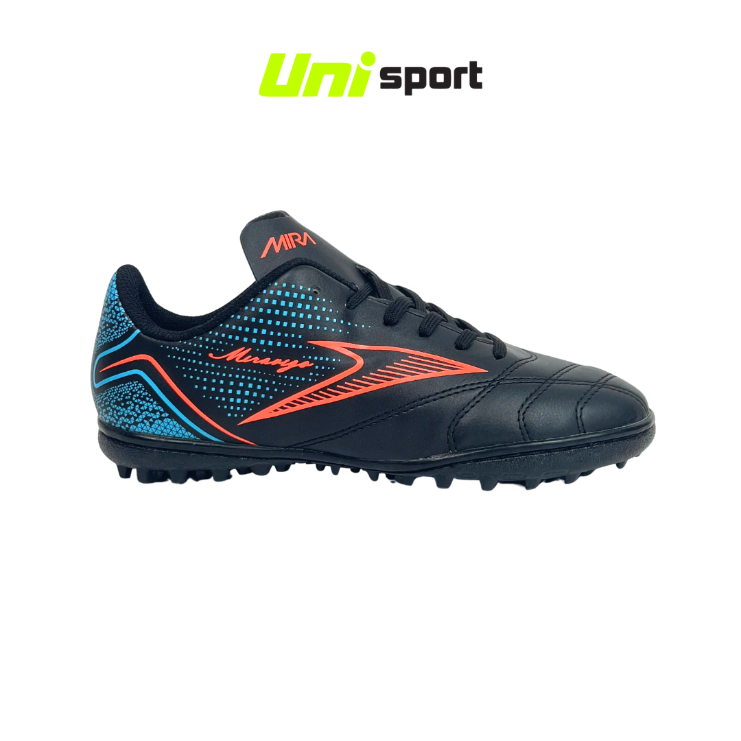 Mira Vigo – Đen là mẫu giày đá banh dành riêng cho trẻ em, phù hợp cho bé mới tập chơi đến đá phong trào. Thiết kế màu đen mạnh mẽ, dễ phối đồ, form gọn gàng giúp bé di chuyển linh hoạt, tự tin xử lý bóng trên sân. Giày có độ bám tốt, hỗ trợ chạy – xoay – sút bóng an toàn trong suốt quá trình luyện tập và thi đấu ⚡🖤