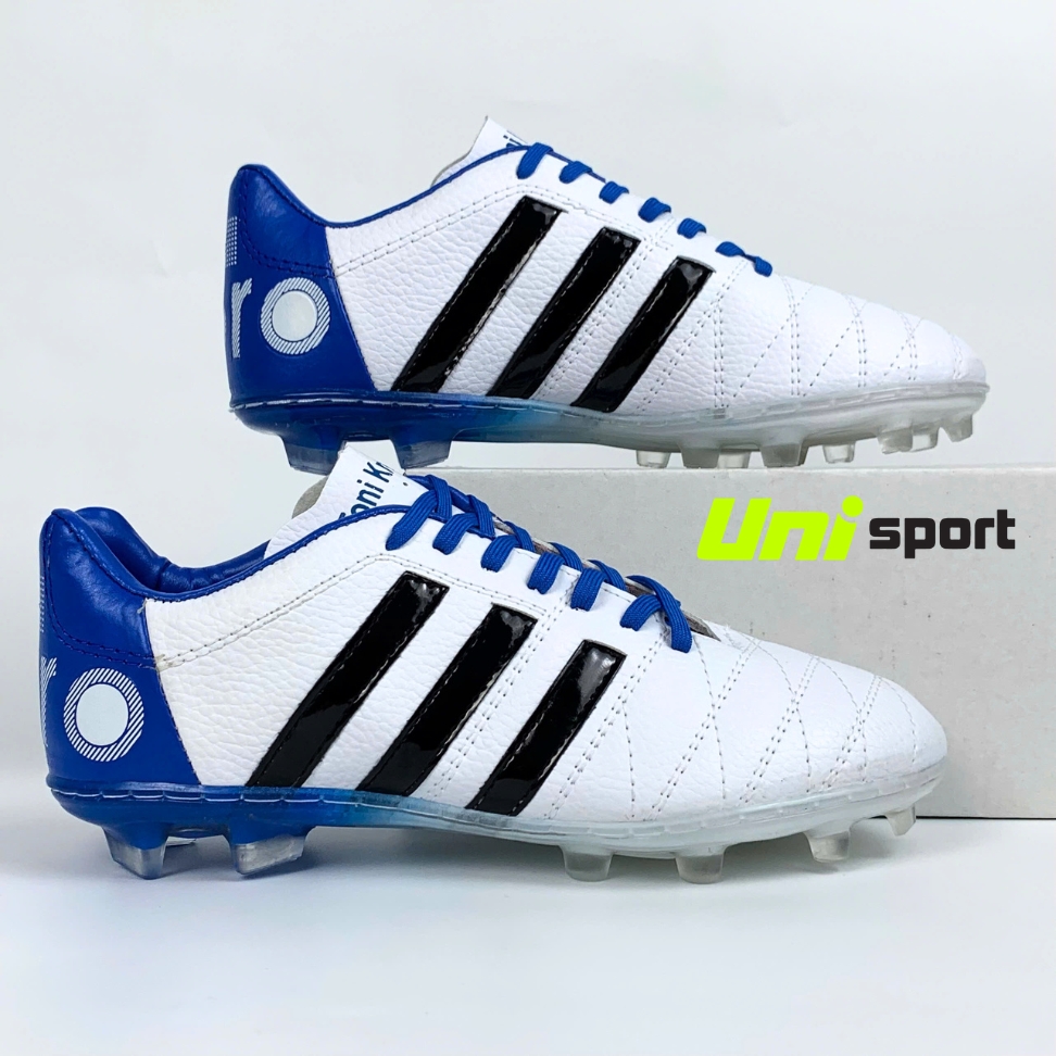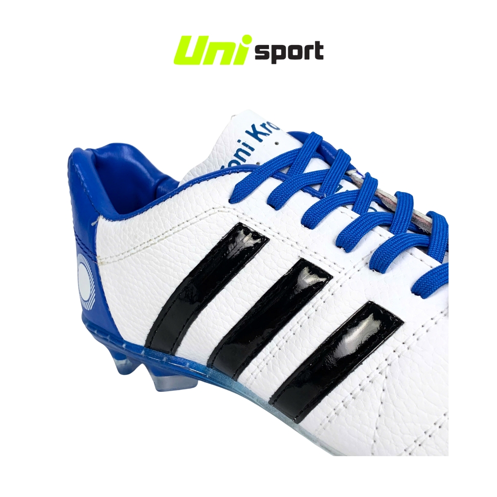 Giày Đá Bóng Đinh Lớn Toni 11Pro - Bích Trắng Sọc Đen là phiên bản mang phong cách thể thao cổ điển, kết hợp hiệu năng thi đấu vượt trội dành cho những người chơi yêu thích sự ổn định, mạnh mẽ và chuẩn form sân cỏ tự nhiên.