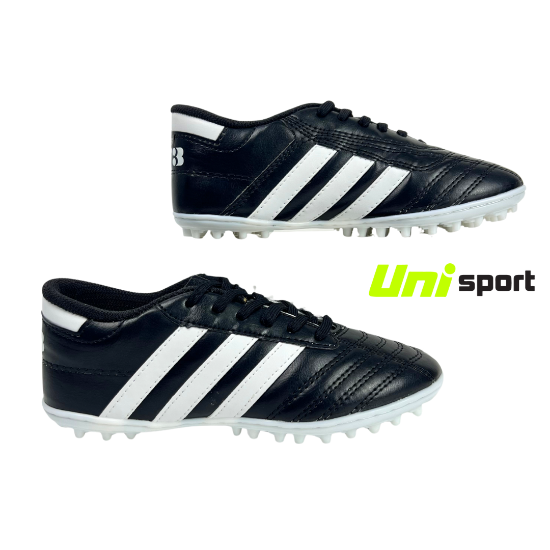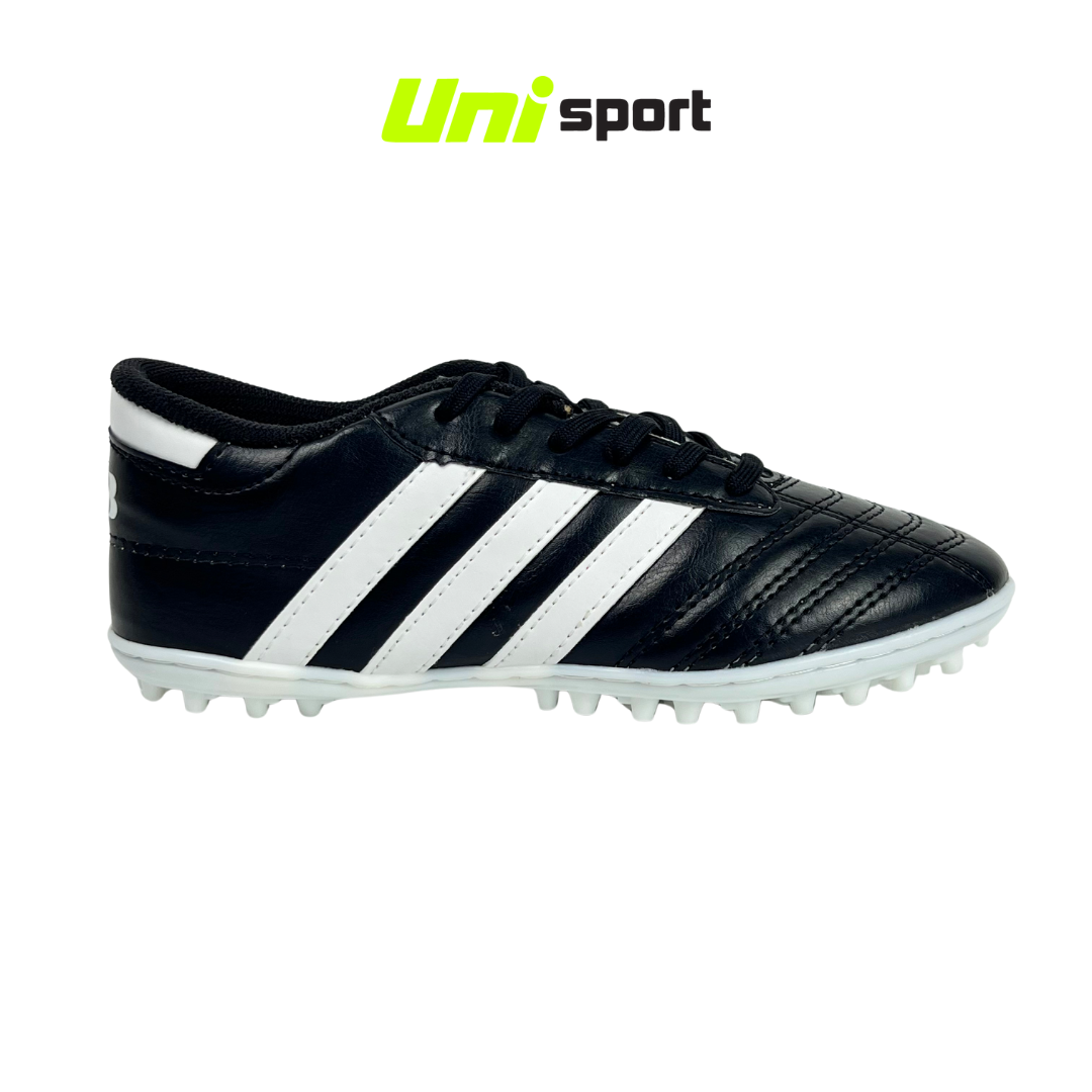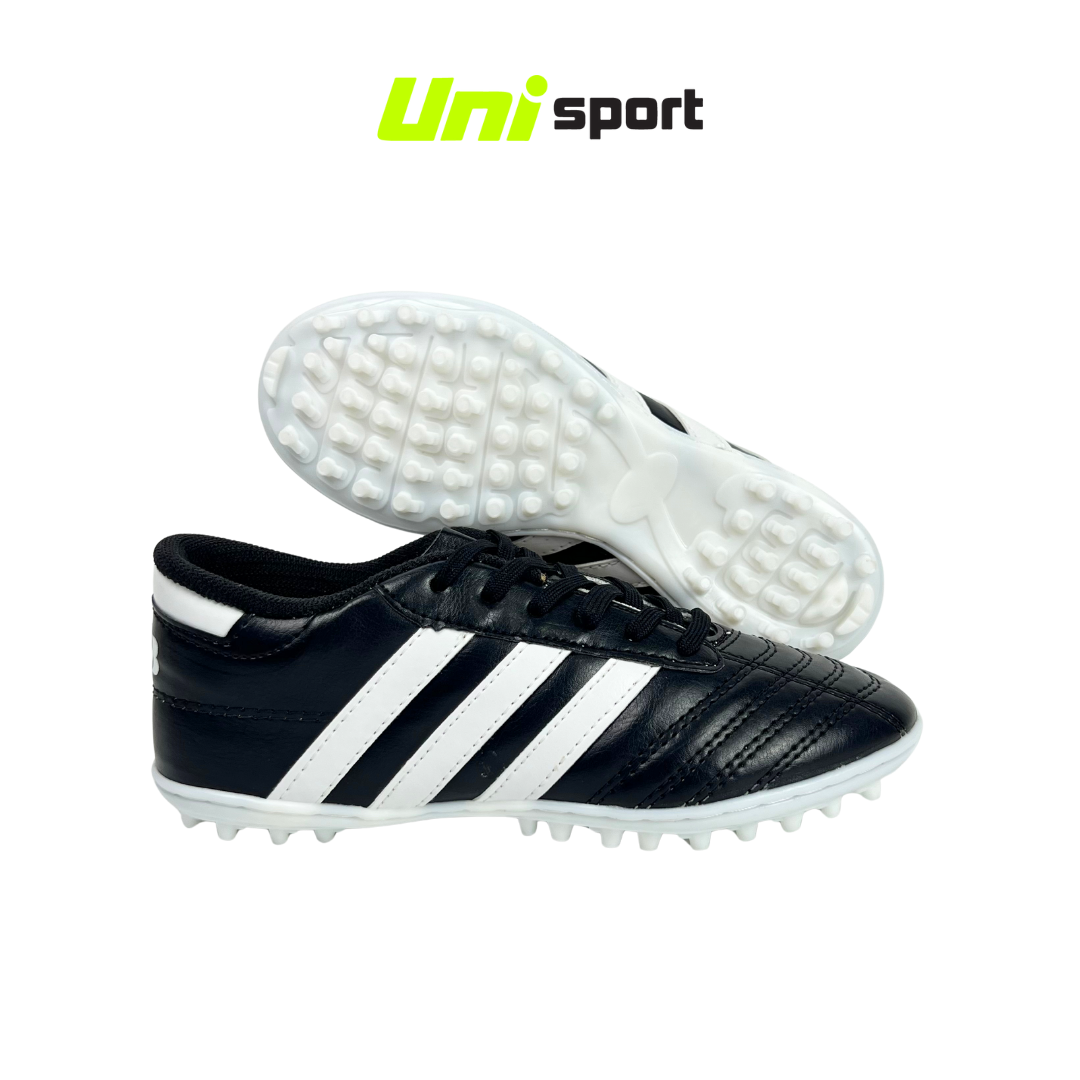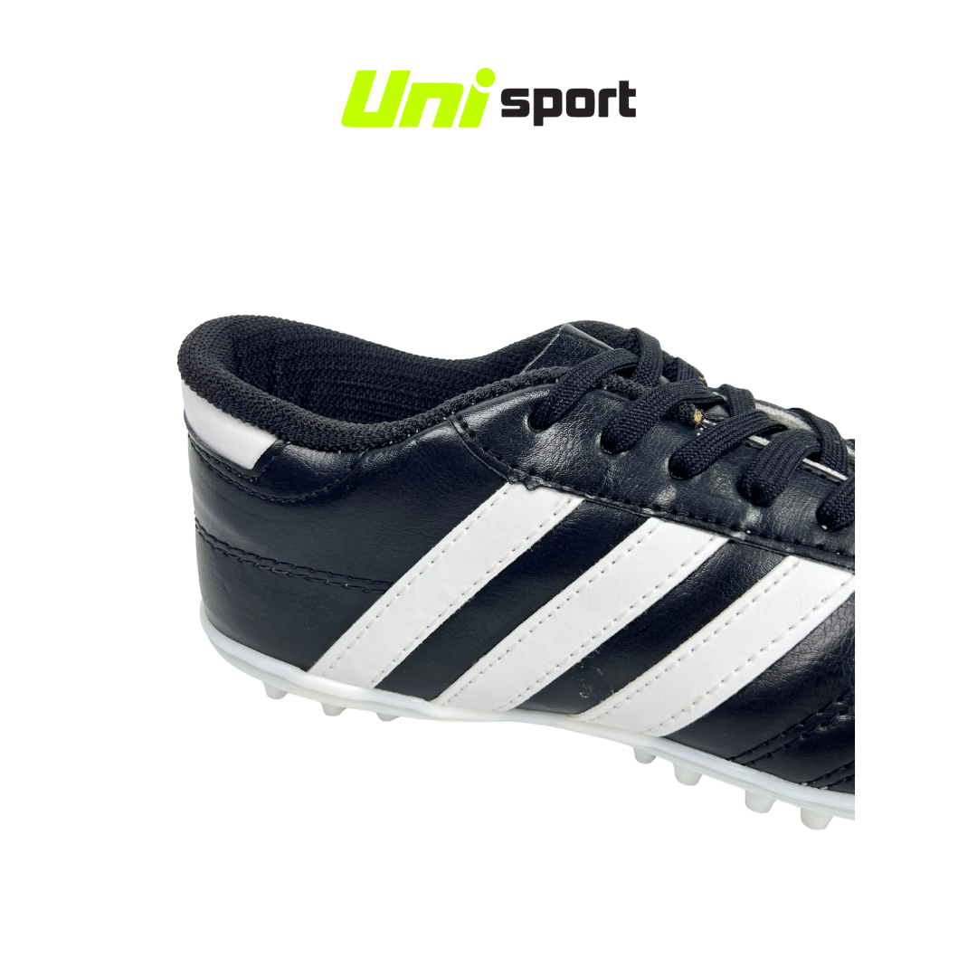 Giày Đá Bóng Trẻ Em Đen 3 Sọc Trắng có thiết kế thể thao năng động, màu đen mạnh mẽ kết hợp 3 sọc trắng nổi bật, giúp bé tự tin ra sân. Form giày ôm chân vừa vặn, dễ mang, hỗ trợ bé di chuyển linh hoạt và kiểm soát bóng tốt. Đế giày bám sân ổn định, mang lại cảm giác an toàn và thoải mái khi bé tập luyện hoặc thi đấu.