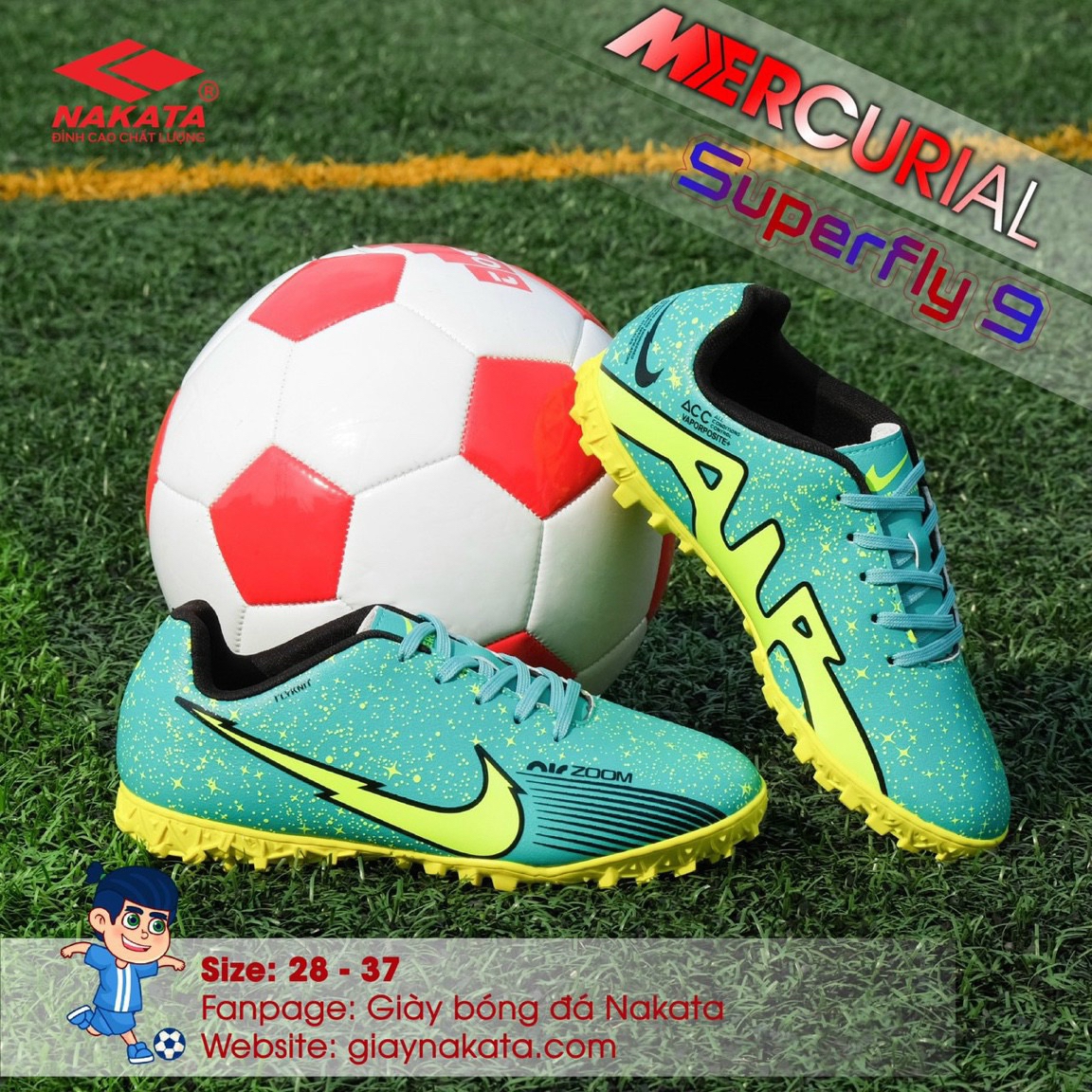 - Đế giày của Nakata Mercurial Superfly 9 được làm bằng cao su chống trơn trượt, tăng độ bám và độ bền cho đôi giày.