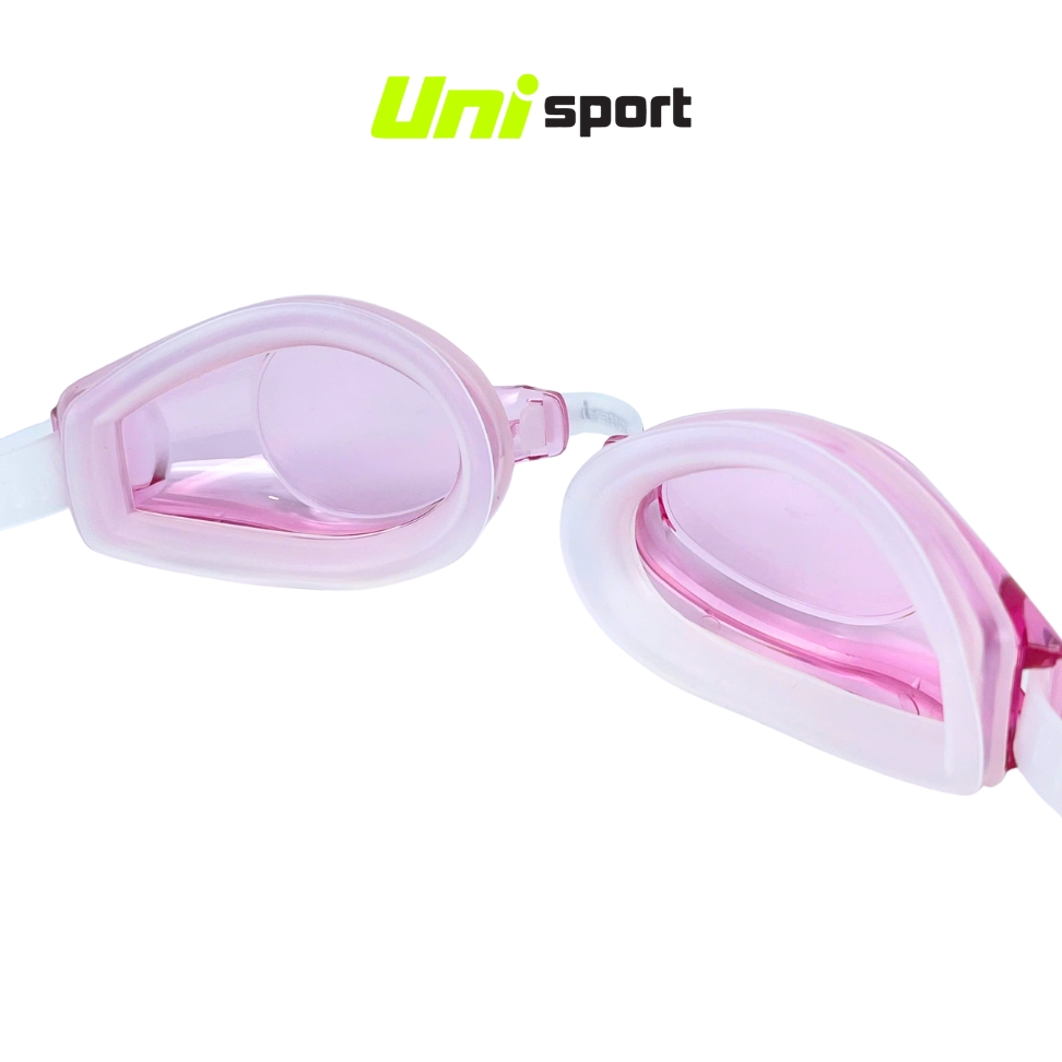 Tròng kính polycarbonate phủ chống mờ (Anti-Fog) và chống tia UV, cho tầm nhìn rõ ràng, bảo vệ mắt khỏi tác hại của ánh nắng và nước hồ bơi.