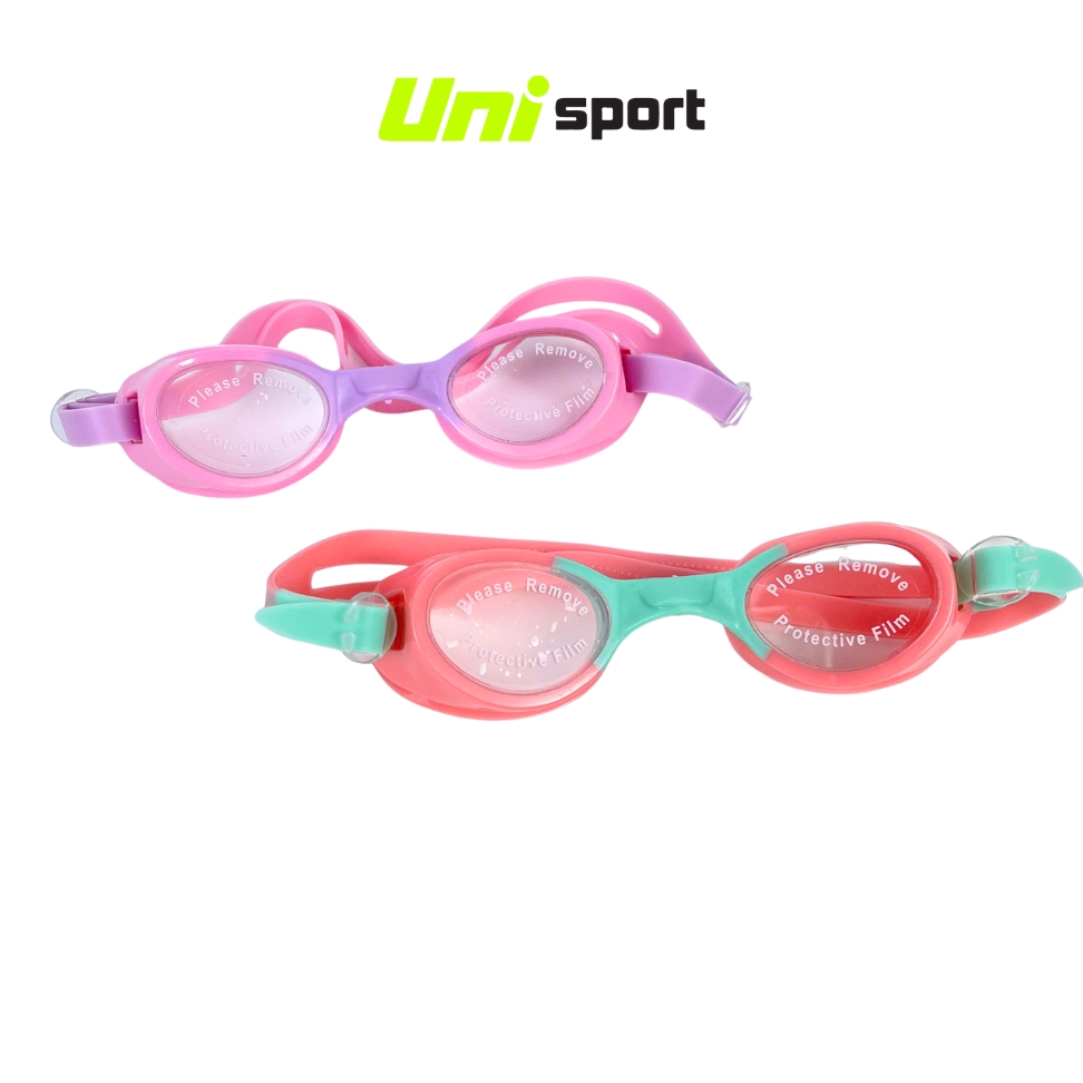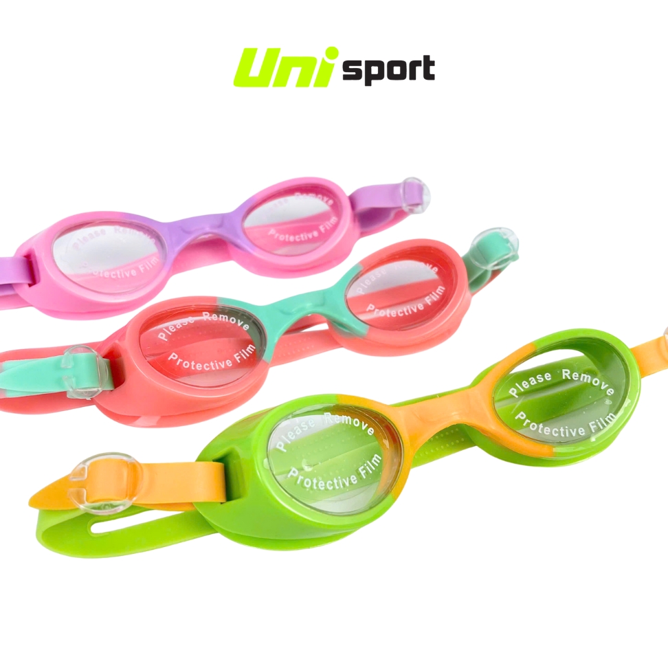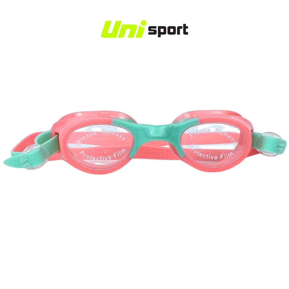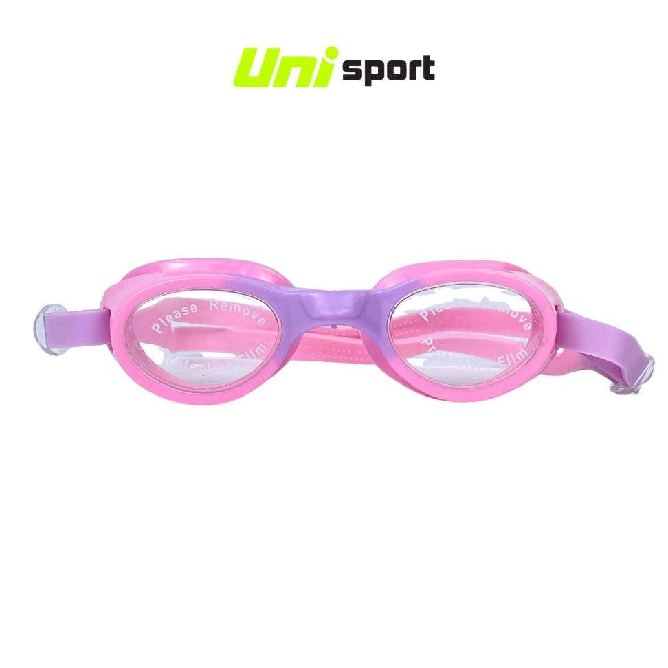 Tròng kính polycarbonate trong suốt, phủ lớp chống mờ (Anti-Fog) và chống tia UV, giúp bé nhìn rõ, thoải mái khi bơi trong hồ hoặc ngoài trời.
