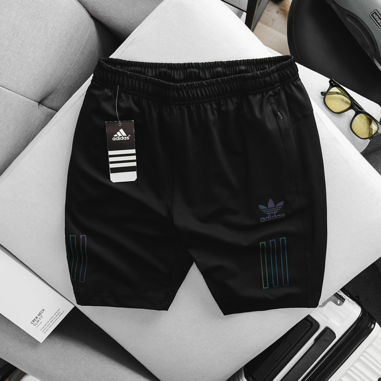 Q.Short ADI Nam Đen Phối 3 Sọc Kiểu