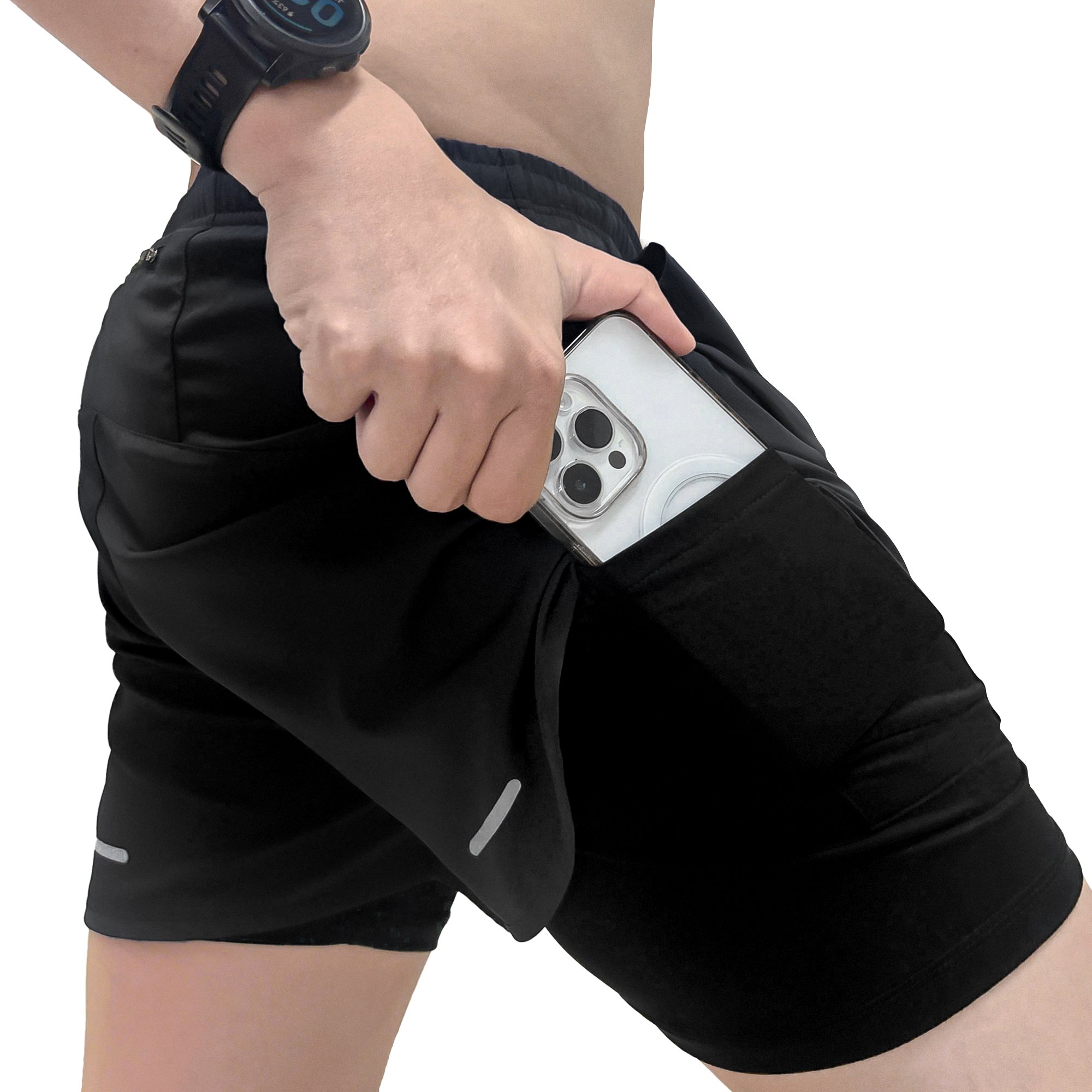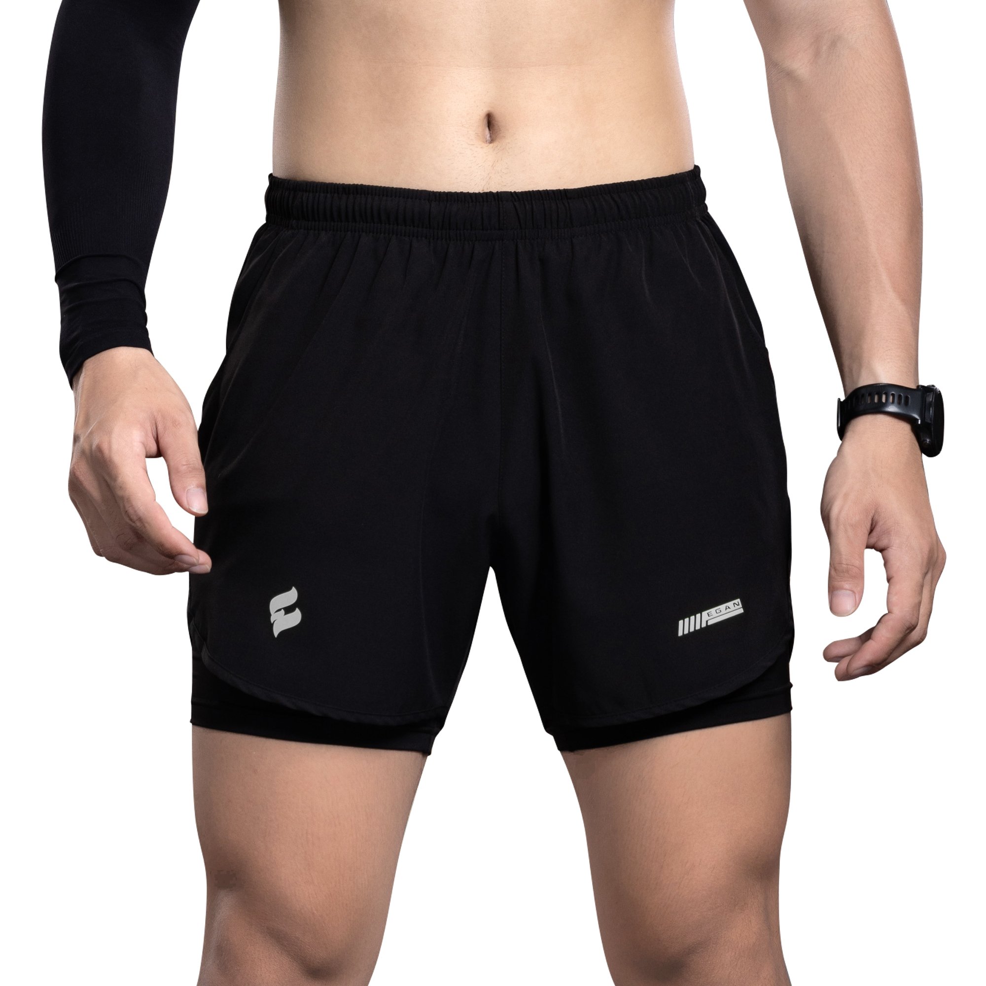 Quần Chạy Bộ Nam 2 Lớp Egan QC02 Đen
