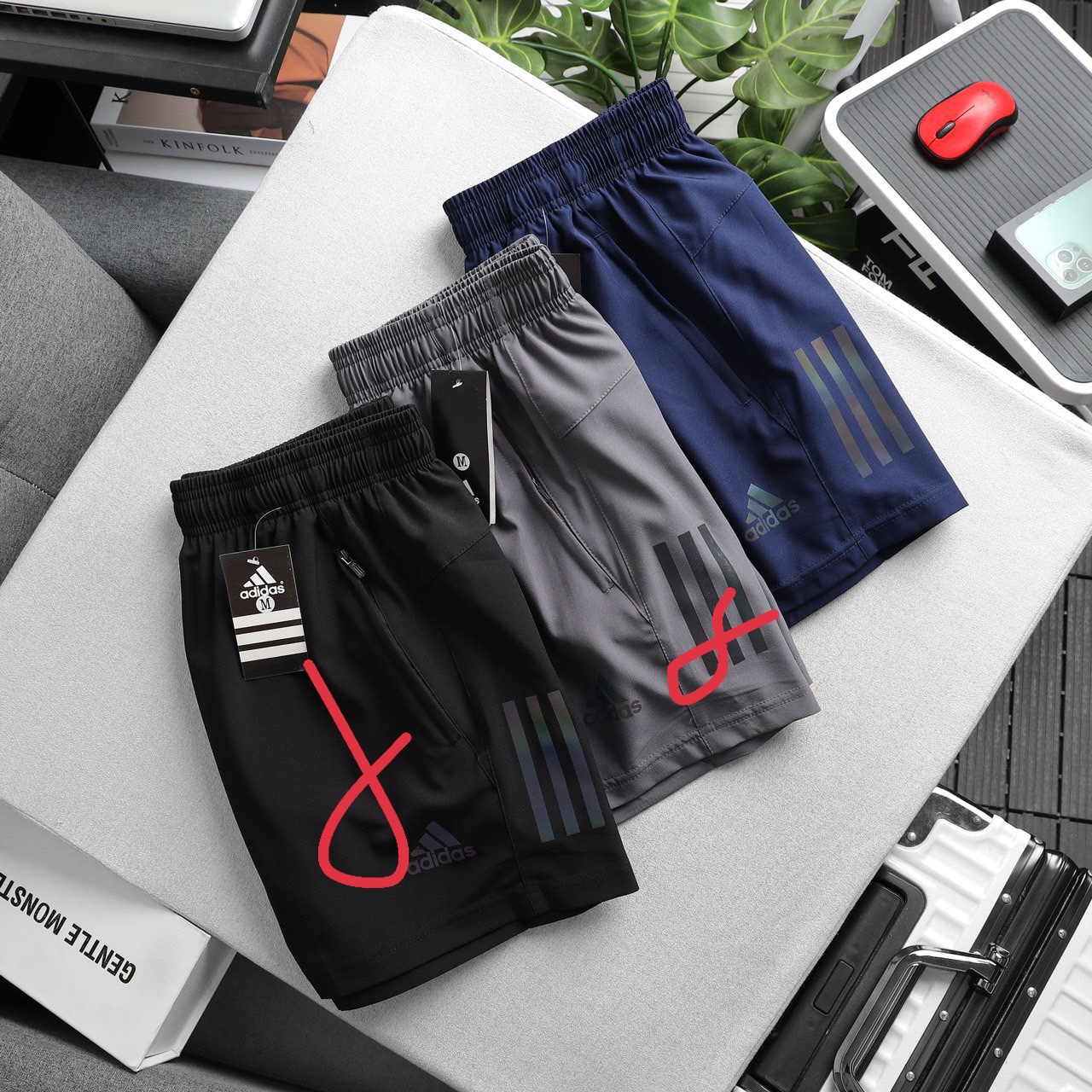 Quần Short Dù Nam ADI Đen Phối 3 Sọc Màu