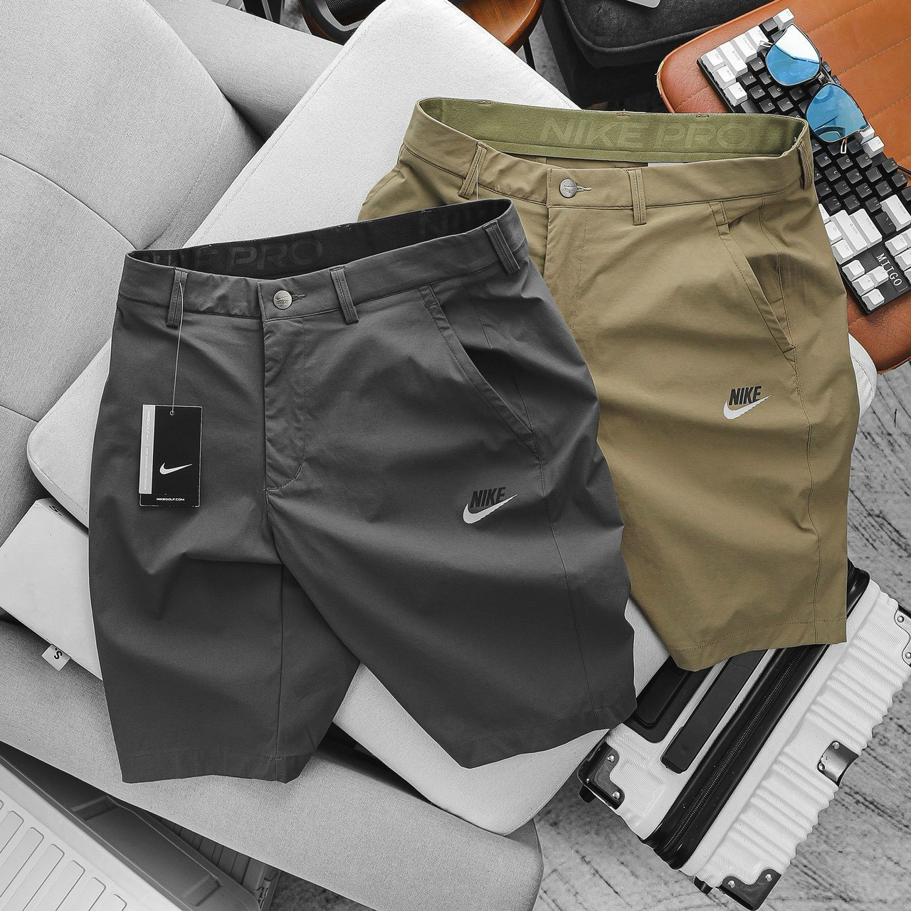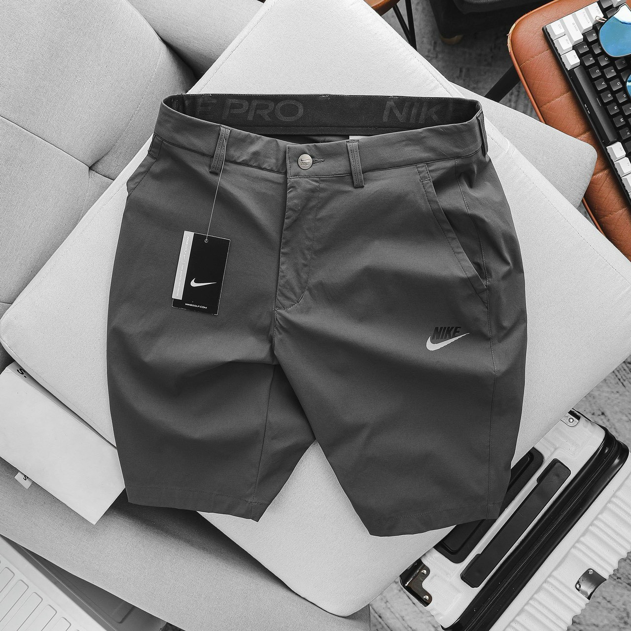 Quần Short Nam N.ike Gài Cúc Golf Xám Đậm