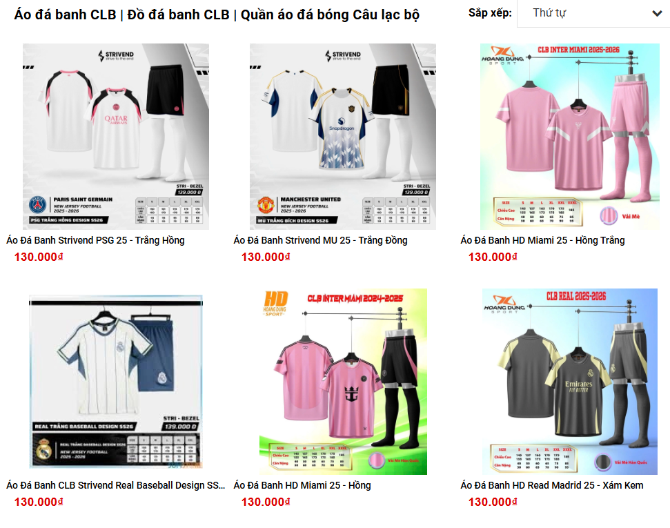 Mẫu sẵn tại shop: các mẫu áo CLB, đội tuyển, hoặc mẫu không logo đang thịnh hành.